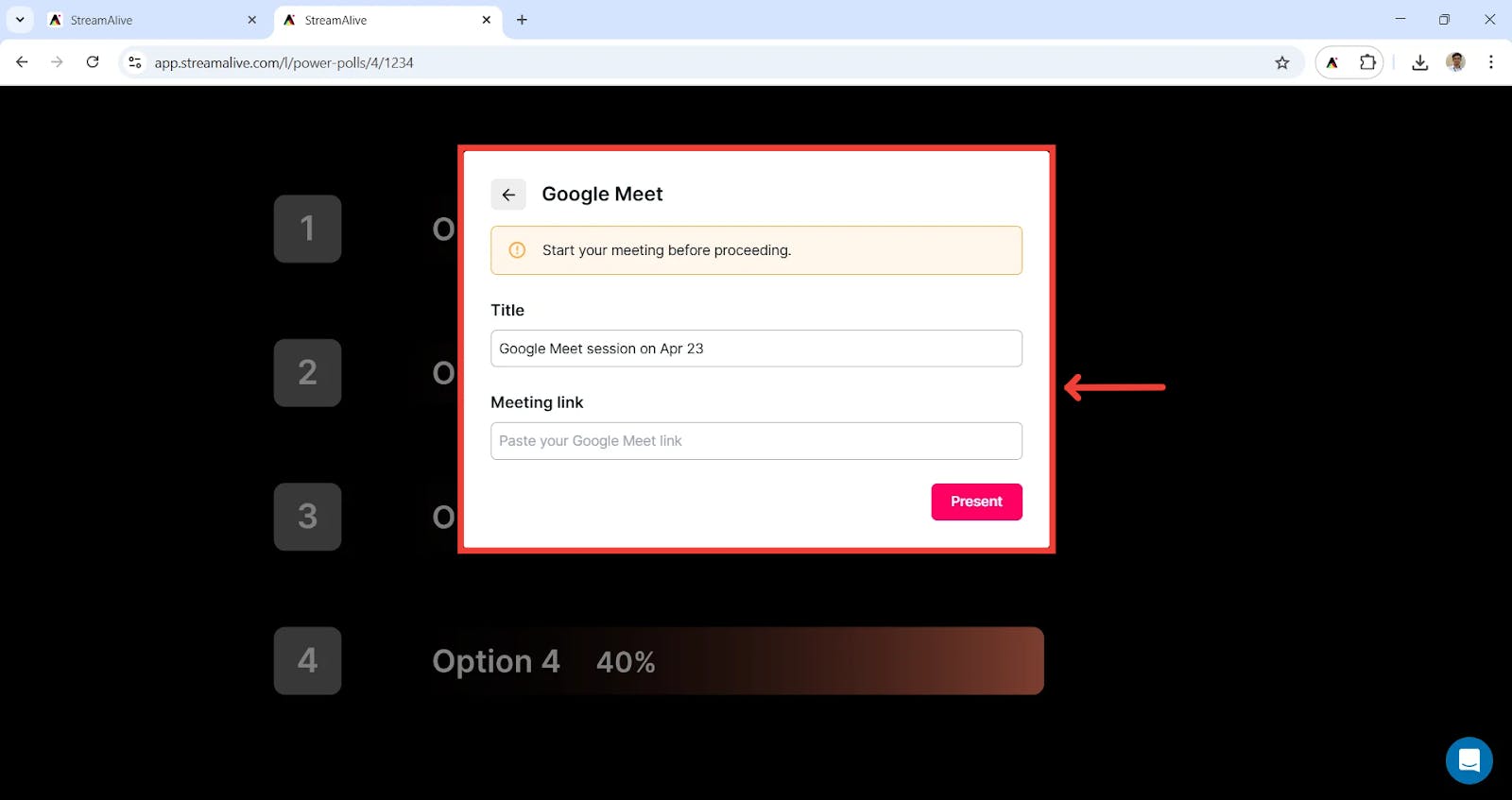 Share the StreamAlive tab with your audience if you have yet to do so.