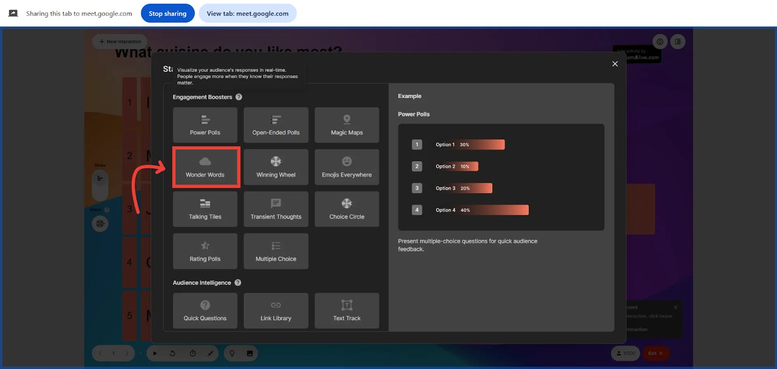 Whether you're running a spontaneous poll, spinning the Winning Wheel, capturing emoji reactions, or launching a word cloud, Quick Interactions help you do it all in real time.